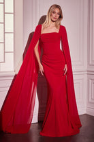 Ladivine CD356 - Vestido de gasa ajustado con mangas de capa
