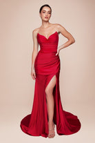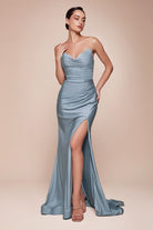 Ladivine CD791 - Vestido ajustado de satén con abertura sin tirantes