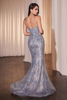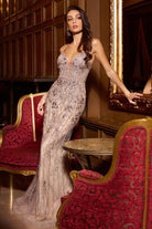 Ladivine CD795 - Vestido de fiesta de encaje con cuentas y escote en V