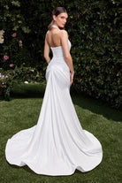 Ladivine CD796W - Vestido de satén blanco con abertura halter