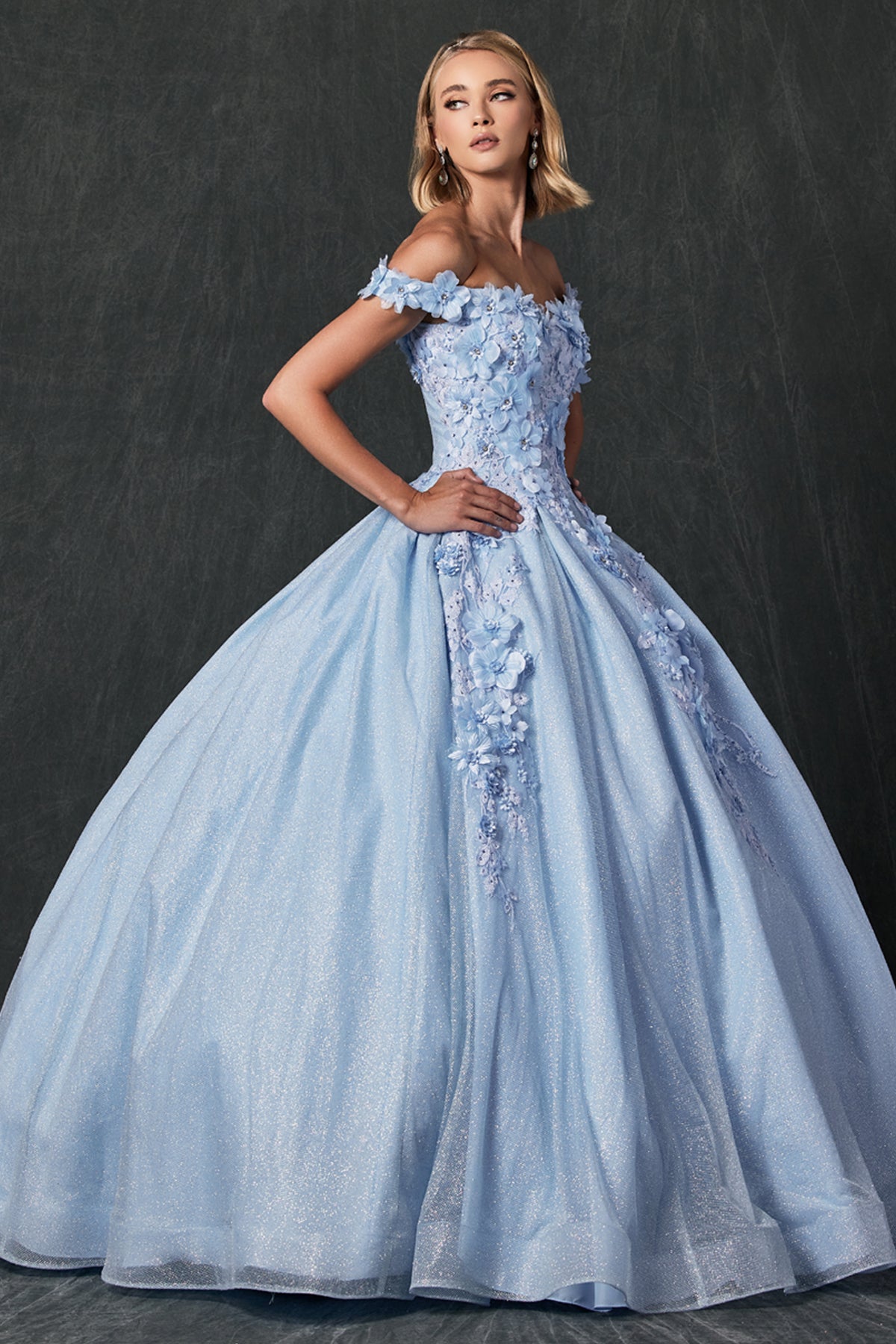 Vestido de Quinceanera floral 3D con purpurina de Juliet 1433