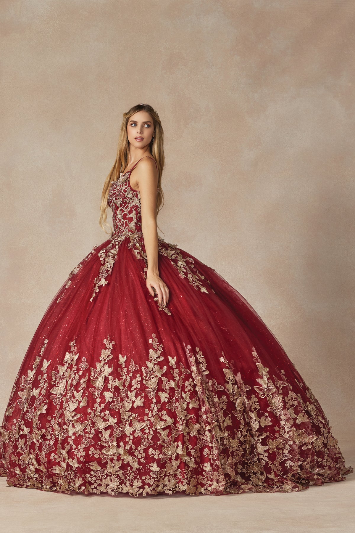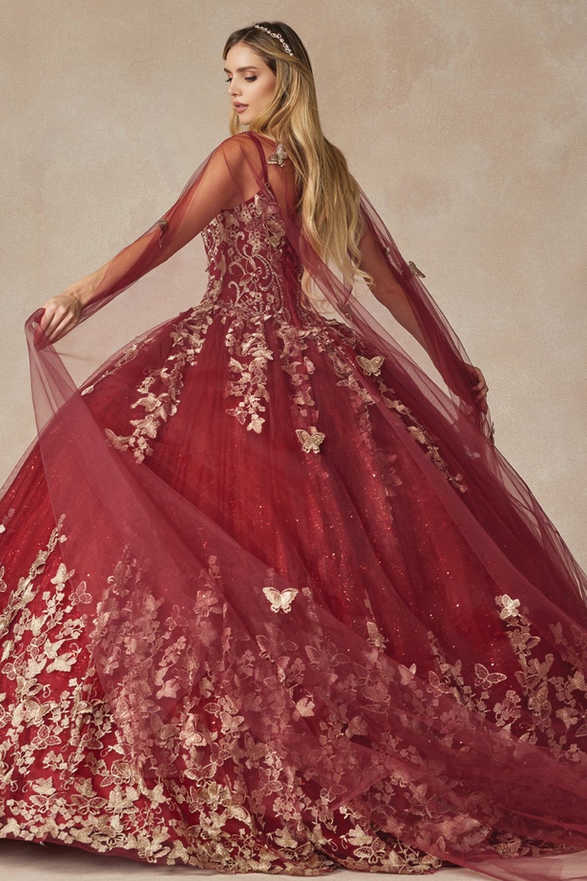 Vestido de Quinceanera con capa de mariposa 3D de Juliet 1442