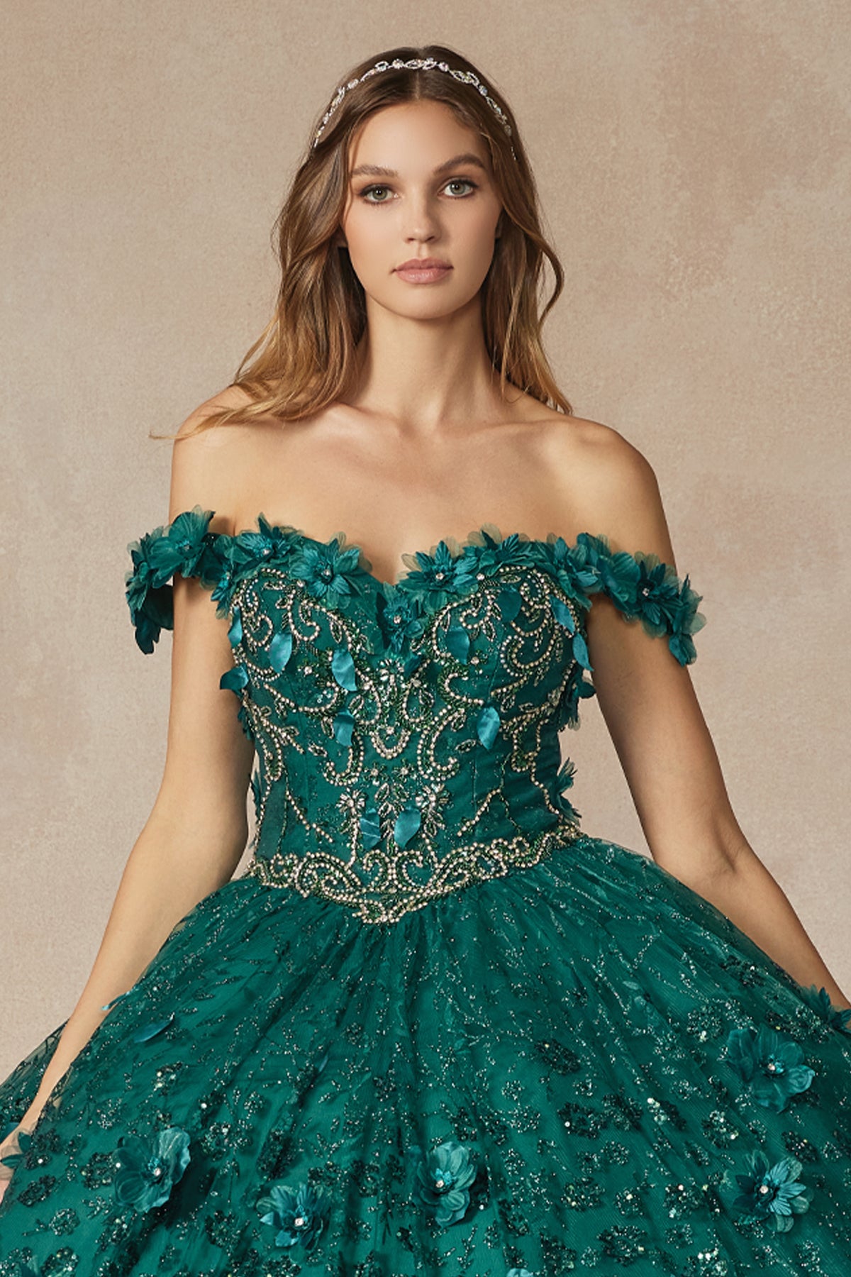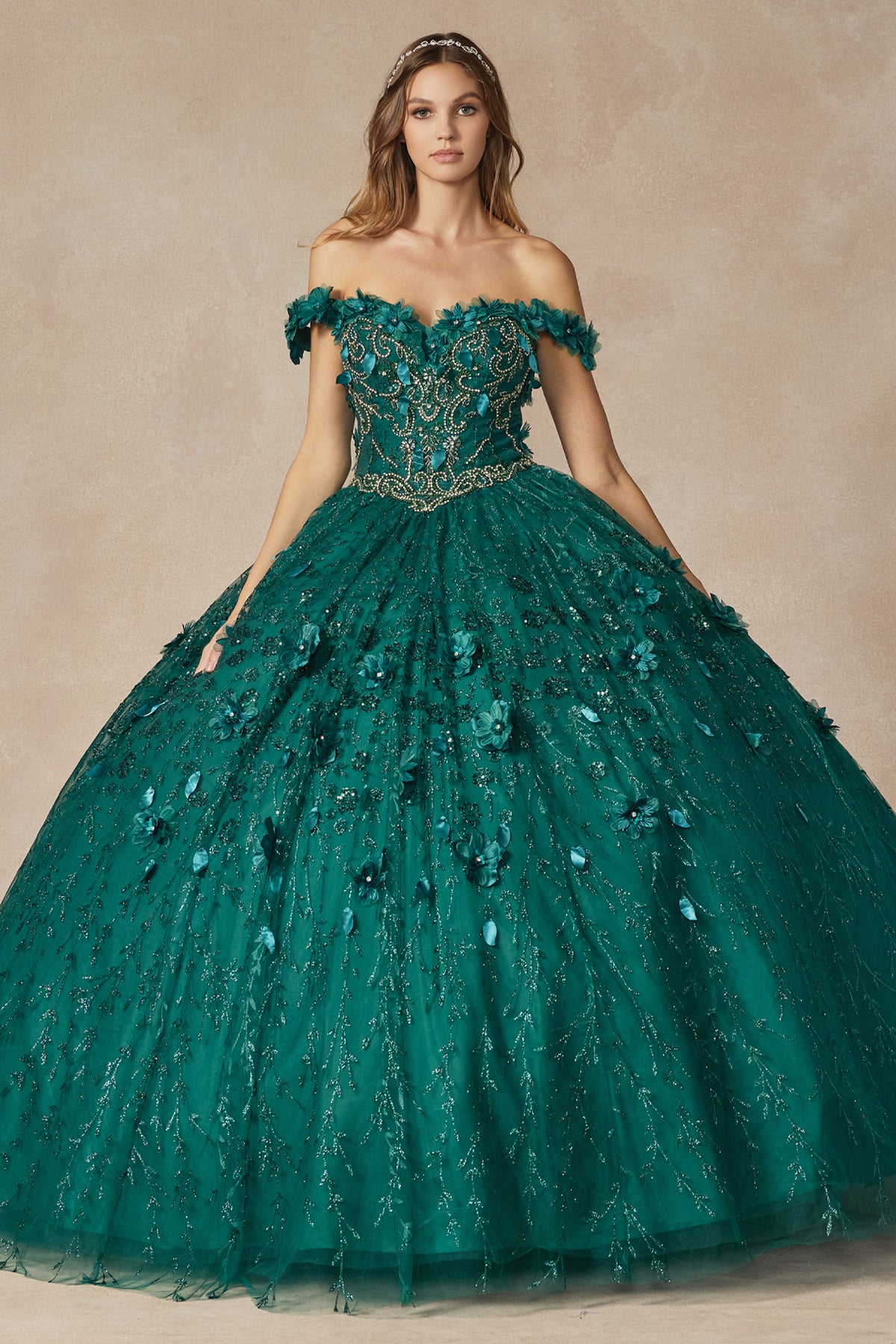 Vestido de Quinceanera floral 3D con purpurina de Juliet 1443