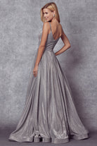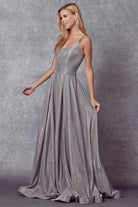 Luce impresionante con este vestido de tul metálico sin mangas y cuello redondo de Juliet 206. Este vestido brillante tiene cierre de cremallera en la espalda y tul brillante hasta el suelo. ¡Deja una impresión impresionante en tu noche especial!