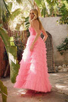 Vestido de fiesta con volantes sin tirantes y corte-A de Juliet JT2456H