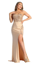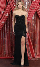 Camine por la alfombra roja con estilo luciendo esta impresionante creación de May Queen MQ1887. Esta asombrosa noche presenta un corpiño ajustado adornado con pedrería en forma de remolino. Presenta un escote corazón sin tirantes y un corsé transparente a media espalda asegurado por un cierre de cremallera central. La falda de tubo de largo completo está diseñada con fruncidos y destaca un adorno en el lateral para añadir glamour. Una cautivadora abertura hasta el muslo y una amplia cola completan este look. ¡Este vestido de noche de May Queen sacará definitivamente la diosa que hay en usted! Las modelos lucen los colores Negro, Huntergreen, Rojo y Real.