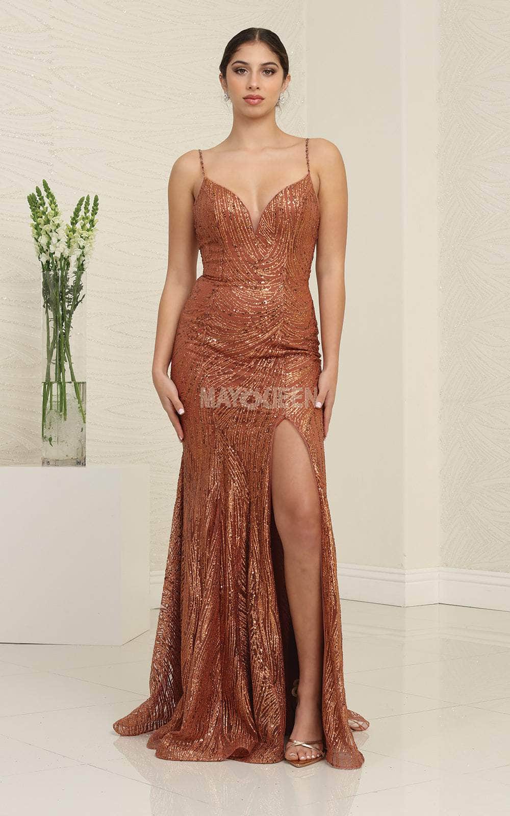 Capte esa llamativa presencia y consiga la atención de todos con la creación May Queen MQ1905. Etéreo en lentejuelas iridiscentes totalmente embellecido en el corpiño de forma ajustada, este estilo hipnotizará a todos a la vista. La noche sin mangas presenta un escote en pico con detalles transparentes en el pecho y tirantes finos para mayor sujeción. La falda se acentúa con una abertura a la altura del muslo para mostrar seductoramente su pierna y termina en una silueta de vaina de longitud completa. Este vestido de noche MQ1905 de May Queen es ideal para el baile de graduación o para cualquier evento nocturno especial. Las modelos llevan los colores Oro, Magenta, Oliva, Rojo, Oro rosado y Óxido.
