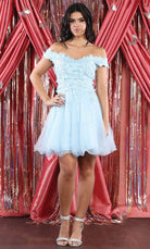 Asombre a todos con el estilo de este impresionante vestido de cóctel de May Queen MQ1966. El corpiño superior ajustado está bellamente adornado con apliques florales en 3D, lentejuelas y bordados. Presenta un escote corazón sin hombros y una espalda clásica de encaje. La falda corta forma una silueta en Corte-A y termina con un dobladillo rizado. Con esta creación de May Queen MQ1966 ¡seguro que podrá bailar toda la noche! Las modelos llevan los colores Baby Blue, Champagne/Gold, Lilac y Silver.