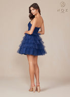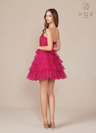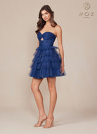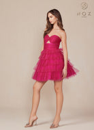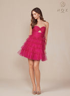 Vestido corto sin tirantes en hilera de lentejuelas
