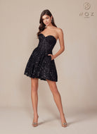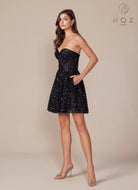 Nox Anabel A843 - Vestido de cóctel sin tirantes de lentejuelas