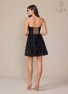 Vestido corto sin tirantes en línea A de lentejuelas