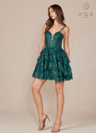 Nox Anabel E914 - Vestido de cóctel de lentejuelas y volantes