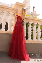Nox Anabel L1362 - Vestido de fiesta con corpiño y hombros fríos