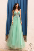 Nox Anabel Q1391 - Vestido de fiesta en línea A con bordado ilusión