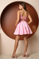 Vestido Corto de Raso Bordado de Nox Anabel T733