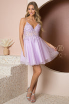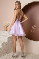 Baila toda la noche con este vestido corto bordado sin mangas y escote en V con falda en línea A de Nox Anabel T739.