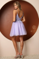 Deslumbra con este vestido corto sin mangas con bordado floral y falda en forma de A de Nox Anabel T741.