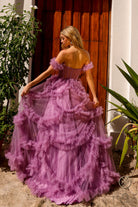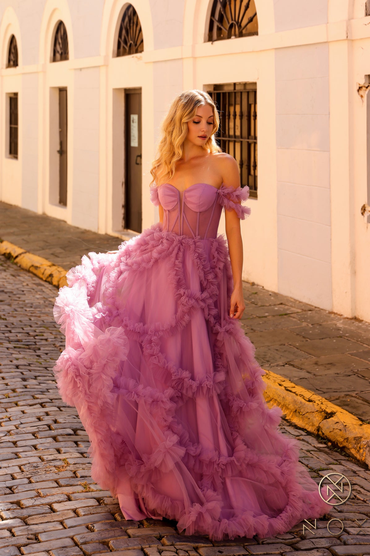 Nox Anabel Y1472 - Vestido de fiesta con volantes y hombros al descubierto