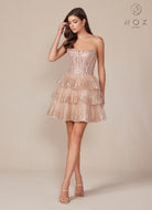 Nox Anabel Y863 - Vestido de cóctel sin tirantes adornado con pedrería