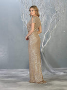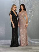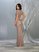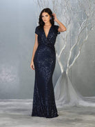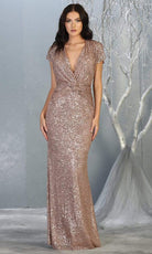 Destelle y brille con esta impresionante pieza de May Queen RQ7794. Todo el vestido está adornado con deslumbrantes brillos mientras el corpiño fruncido muestra un escote en V pronunciado y mangas cortas con acento de abertura. La falda luce una silueta de vaina, que se desliza hasta un dobladillo de longitud completa. Esta creación de May Queen es realmente una definición de glamour.