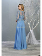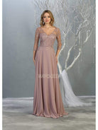 Haga una declaración sofisticada con esta magnífica obra maestra de May Queen RQ7820. Adornos de pedrería diseñan el corpiño, enmarcado con un escote ilusión en V sobre un distintivo forro corazón y mangas transparentes de un cuarto de largo. Los suaves pliegues realzan la falda de corte-A que cae en cascada hasta el bajo. La espalda se cierra con una cremallera central. Capte el glamour con este vestido Reina de Mayo.