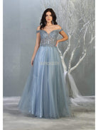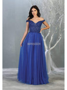 Vestido de noche hombros descubiertos con adornos RQ7864