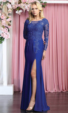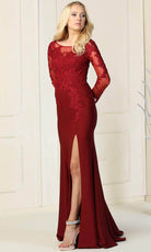 Prepárese para mostrar su lado glamuroso con la creación de May Queen RQ7913. Este elegante vestido está bellamente adornado con cuentas y bordados florales enmarcados con un escote bateau ilusión y mangas largas. La espalda completa ilusión se cierra con un detalle de cremallera central. Revelando un corpiño entallado con costuras, la falda se abre con una abertura alta mientras cae en cascada en una silueta trompeta de largo completo y termina en una cola de barrido. Destaque entre la fabulosa multitud mientras todas las miradas se centran en usted con esta glamurosa obra maestra de Reina de Mayo. Vaya donde vaya, lleve lo que lleve, deje una impresión duradera en la reunión con la colección de vestidos de May Queen para novia, dama de honor, baile de graduación, regreso a casa, cóctel, formal, semiformal y muchos temas más. Las modelos lucen los colores Negro, Borgoña, Rosa polvoriento, Marfil y Real.