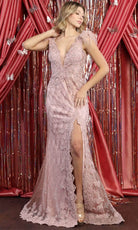 Sea la más encantadora de todas llevando esta obra maestra May Queen RQ7925. Este vestido, que realza su figura, está llamativamente adornado con joyas bordadas y revela un escote en V acentuado con un panel transparente. Este seductor atuendo le hará destacar entre la multitud con sus tirantes de plumas. Siéntase más sexy que nunca al mostrar una espalda en forma de V con cierre de cremallera trasera. La falda se prolonga para crear una silueta de vaina con una abertura alta y una cola festoneada. Resplandezca con el romanticismo clásico de esta obra maestra del diseño de May Queen. Las modelos llevan los colores Ivory Nude, Red y Rose Gold.