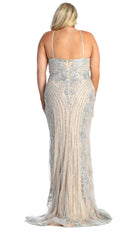 Disfrute de una noche maravillosa con este maravilloso vestido de gala de May Queen RQ7946. Una combinación de apliques y serpentinas de lentejuelas adornan esta obra maestra, diseñada estraégicamente para resaltar la figura. La figura aparece estilizada en una silueta de vaina, mientras que la falda se enreda alrededor de los pies con una cola de barrido. El corpiño esculpido luce un escote en V, enmarcado por sencillos tirantes espagueti adornados por una hilera de lentejuelas. Haga que sea su momento de brillar con este vestido de noche profusamente adornado de May Queen RQ7946. La modelo lleva puesto el color Plata/Nude.