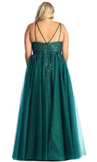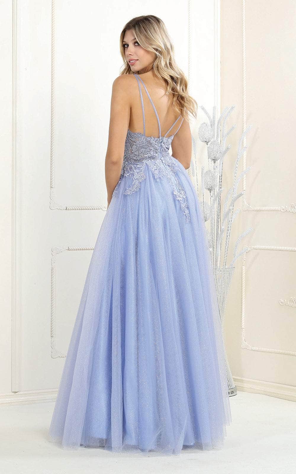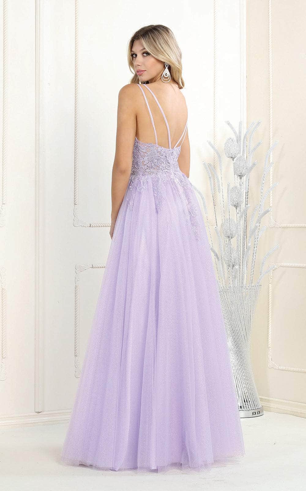 Haga un chapoteo memorable en su velada de lujo con este lujoso vestido formal Corte-A de May Queen. Este glamuroso vestido presenta una inserción de ilusión y tirantes de espagueti dobles en el corpiño bordado que también está detallado con cuentas multicolores y se sujeta con una cremallera trasera. Los bordados siguen por debajo de la zona de la cintura hasta la falda en línea A de múltiples capas y brillantes. ¡Aporte un toque de sol a su evento de disfraces con esta creación de May Queen! Las modelos llevan las variantes Dusty blue, Hunter green, Ivory y Lilac.