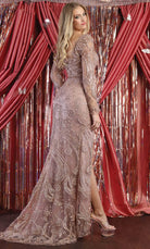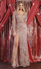 Muestre su personalidad distintiva y su sofisticación clásica con este vestido de noche May Queen RQ7972. Adornado con un brillante patrón de encaje bordado que le permitirá brillar como una estrella, este fabuloso vestido luce mangas largas transparentes y un escote ilusión en V. La falda tiene una silueta de vaina hasta el suelo con una abertura alta para mostrar su pierna sexy. Haga que sus ojos la sigan mientras camina con esta cautivadora creación Lara May Queen RQ7972. El vestido se muestra en el color Cappuccino