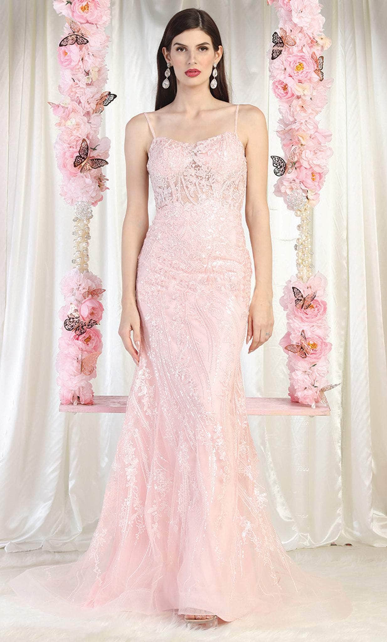 Estará más que espléndida cuando lleve este inmejorable vestido de noche de May Queen RQ7974. Este maravilloso vestido presenta un corpiño sin mangas y transparente en tejido bordado ornamentado sujeto con tirantes de espagueti y una espalda abierta con cordones. A continuación, el diseño sigue con el tejido de pedrería y bordado que fluye maravillosamente hasta llegar a la silueta de Corte-A y el dobladillo de crin con la cola de barrido. ¡Desate un glamour interior que atraiga todas las miradas hacia usted en esta obra maestra de May Queen RQ7974! Las modelos llevan los colores Baby Blue, Black, Blush y Red.