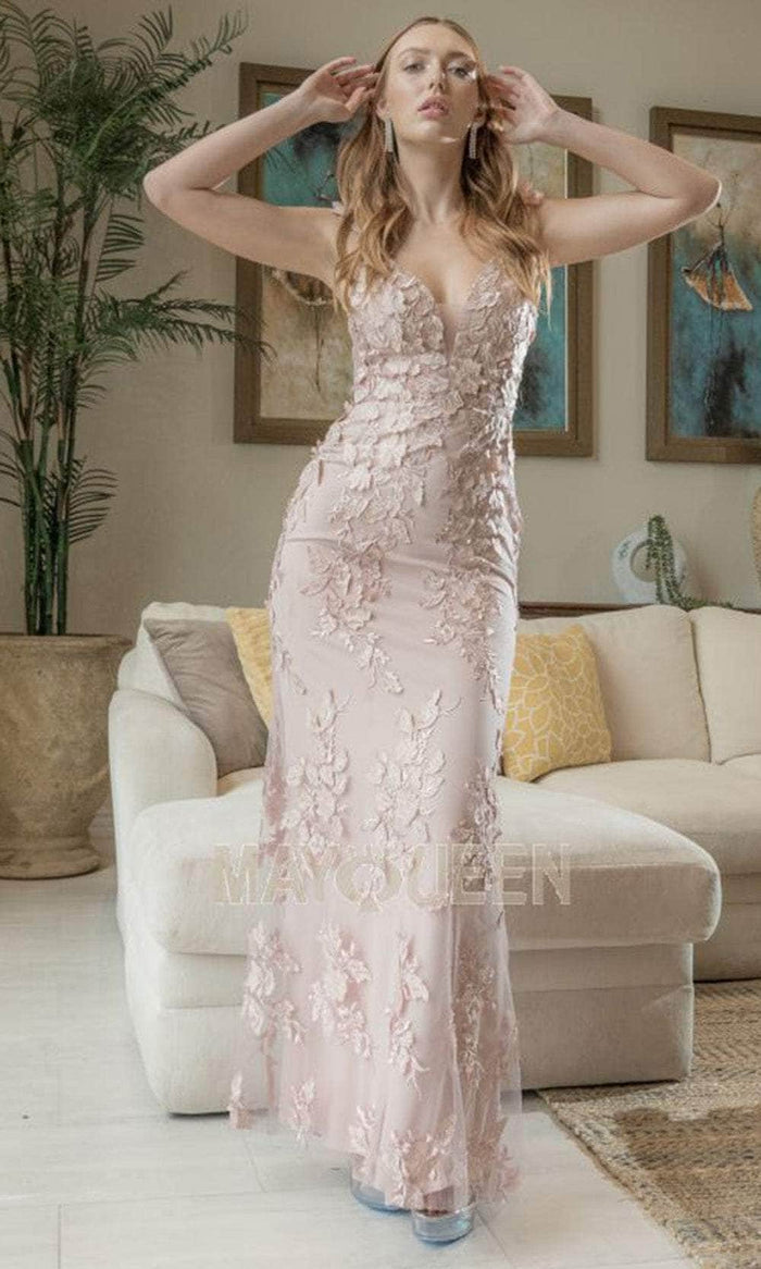 Capte el glamour mientras camina con este fabuloso vestido de noche de May Queen RQ7977. Con apliques de encaje de follaje y bordados, este vestido sin mangas llama la atención y realza su gracia femenina. Está adornado con delicados tirantes de espagueti que conducen al escote en pico y a la atrevida espalda abierta. La falda dibuja una silueta de vaina que se desliza sin esfuerzo hasta el dobladillo hasta el suelo. Este estilo May Queen RQ7977 está especialmente diseñado para hacer que esa ocasión especial merezca ser recordada. La modelo lleva el color Malva.