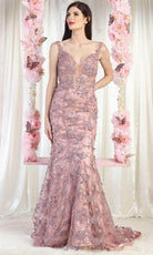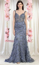 Abrace a su diosa interior y rebose confianza con este impresionante vestido de la obra maestra de May Queen RQ7982. Adornado maravillosamente con exquisitos bordados por todas partes. El corpiño ilusión corsé sin mangas añade un toque de sensualidad a este impresionante conjunto. La inserción transparente crea un aspecto delicado y femenino, mientras que la cola añade un efecto dramático al caminar. La espalda abierta y los botones en el centro crean un impresionante punto focal, convirtiéndole en el centro de todas las miradas. Este May Queen RQ7982 es perfecto para cualquier ocasión formal. Las modelos llevan los colores Dusty Blue, Hunter Green, Ivory y Mauve.