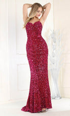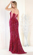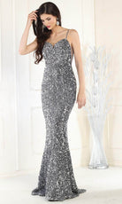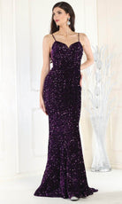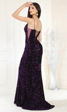 Este magnífico vestido de noche May Queen RQ7987, cubierto de relucientes lentejuelas, le llevará a otro nivel de lujo. El vestido tiene paneles laterales de malla y delicados tirantes espagueti que resaltan la esbelta silueta y conducen a una espalda entreabierta con lazos de encaje. La falda sirena de largo completo abraza sus curvas, creando un elegante flujo que se remata con una magnífica cola de barrido. Este vestido está adornado con lentejuelas brillantes en cada centímetro, transmitiendo sofisticación y elegancia. Este asombroso May Queen RQ7987 está pensado para convertirle en el centro de todas las miradas. Las modelos llevan colores fucsia, morado y plateado.