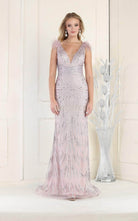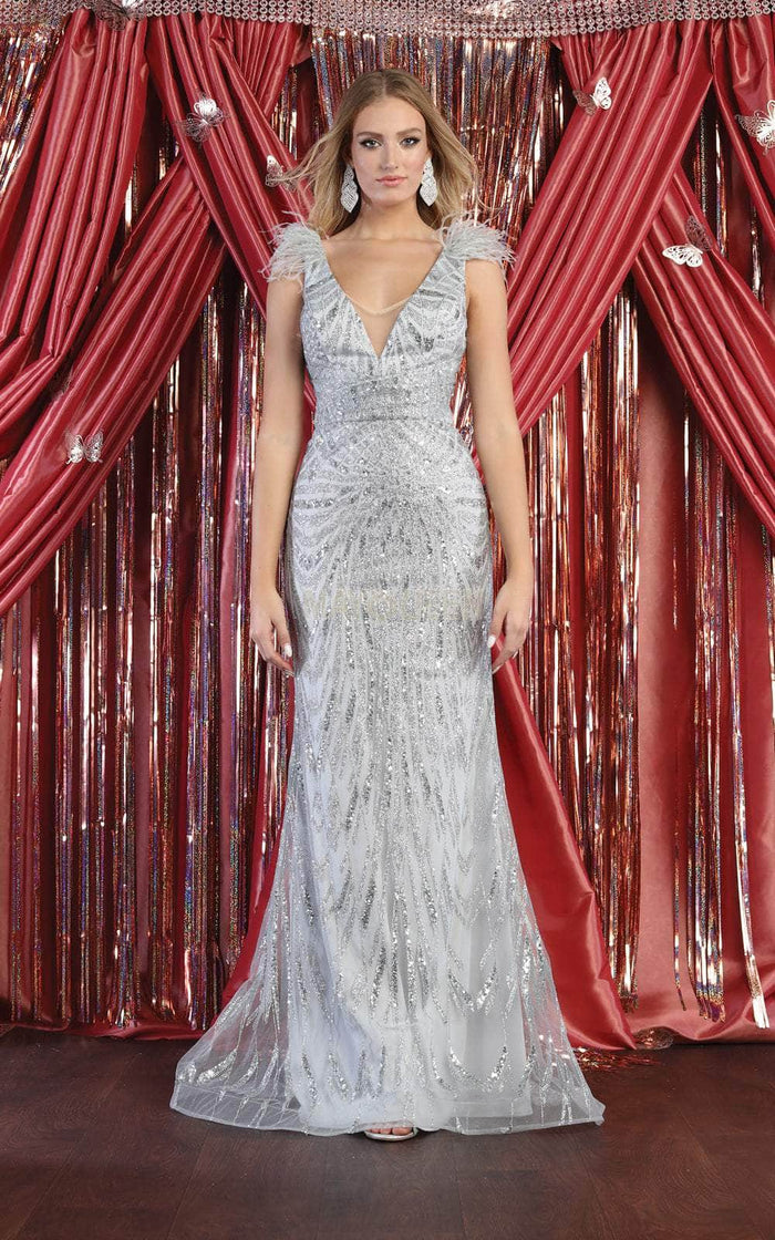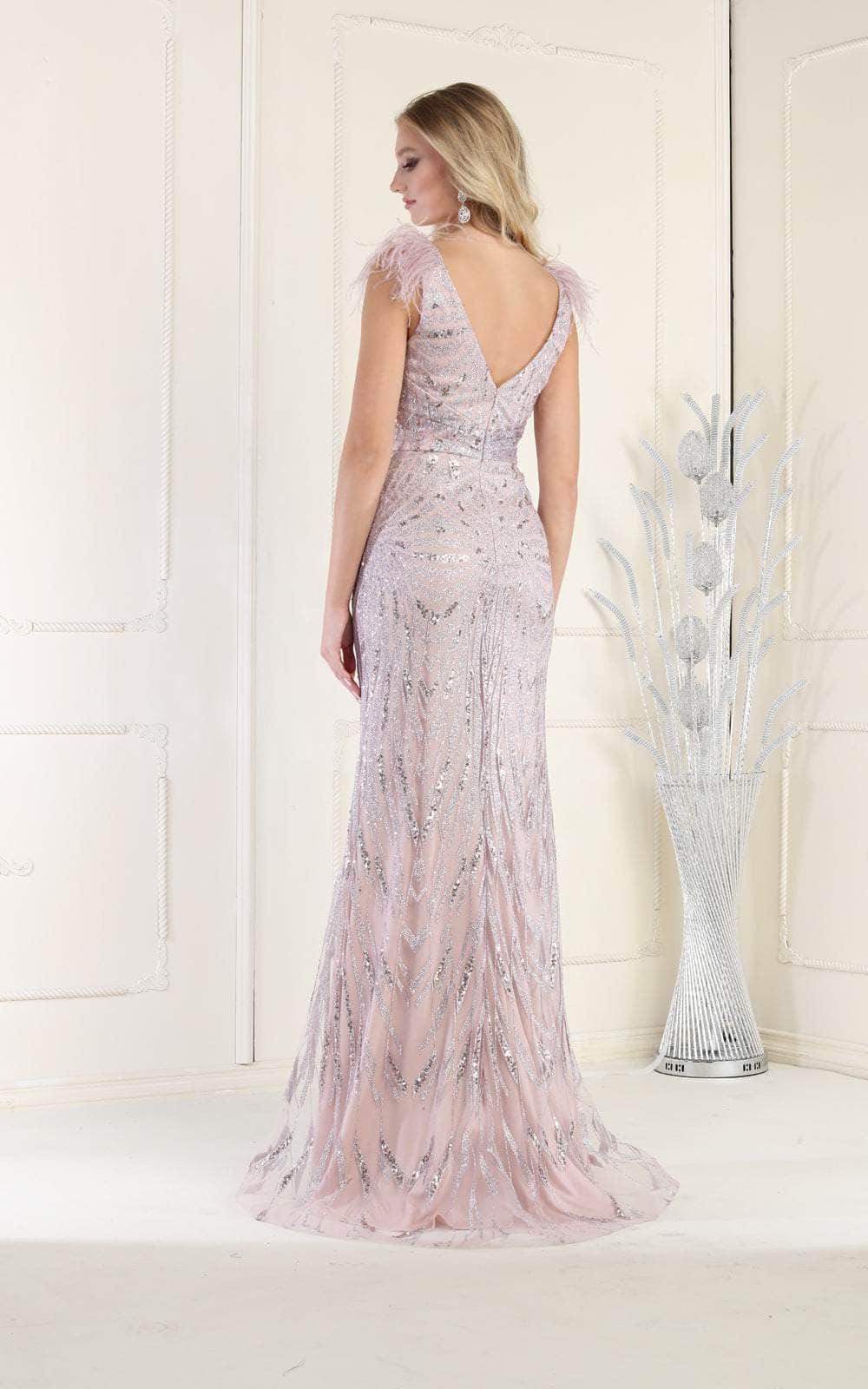 Espere girar cabezas cuando entre en su evento especial llevando este creativo y romántico May Queen RQ7989. Siéntase glamurosa con los detalles del corpiño de este vestido, que incorpora mangas de plumas y un escote en V pronunciado. Desde la cintura normal, que se realza con una cinturilla envolvente, desciende una falda de silueta columna, mostrando estelas y detalles de lentejuelas que llegan hasta el dobladillo. Esta creación de May Queen RQ7989 seguro que mostrará su belleza y gracia naturales. Las modelos lucen colores dorado, malva y plateado.