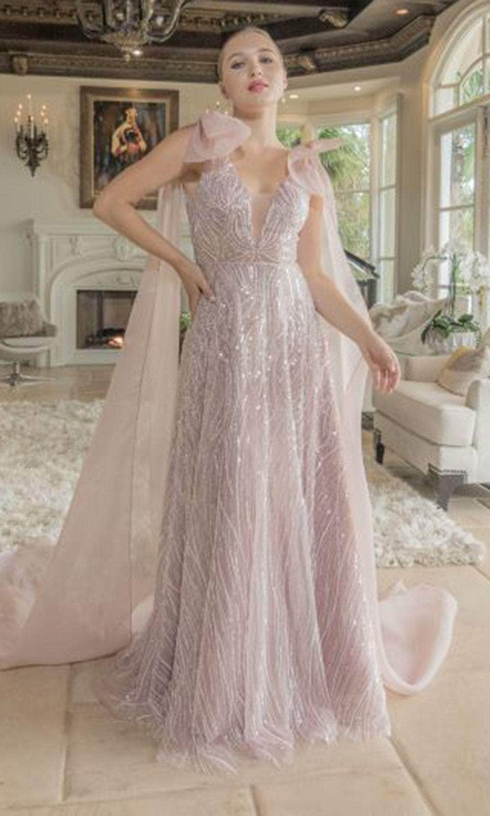 Sea una mujer de elegancia y magnificencia en esta obra maestra de May Queen RQ7998. Este estilo sin mangas sorprenderá a todos con su adorno de cuentas en todo el corpiño y su elegante escote en pico. La larga capa está unida a ambos tirantes y tiene un lazo en la parte superior que le da un toque distintivo y moderno. La falda, que termina en una espectacular cola, cae sin esfuerzo en una silueta de corte-A que favorece a todas las figuras. Este vestido de noche de May Queen RQ7998 es todo un acierto para la alfombra roja. La modelo lleva el color Rosegold.