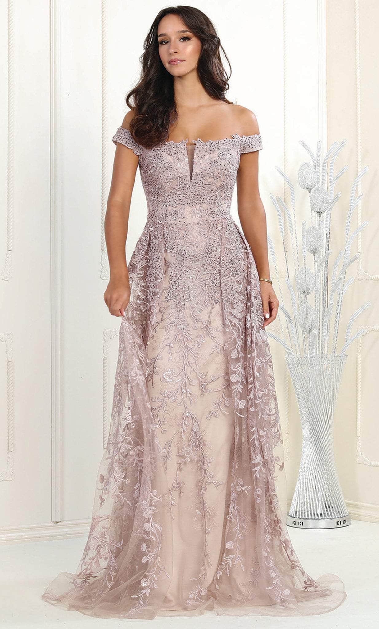Déjese encantar por la magnífica elegancia de este impresionante vestido de noche de May Queen RQ8000. Este vestido presenta un estilo sin hombros y un escote de muesca con una inserción de ilusión. Tiene bordados florales y detalles de pedrería en todo el corpiño. La falda tiene una silueta de corte A hasta el suelo y está rematada con una cola de barrido. Luzca un estilo lujoso que deslumbre con esta elegante obra maestra de May Queen RQ8000.