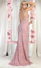Vestido de fiesta con escote ilusión de lentejuelas RQ8004