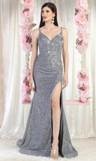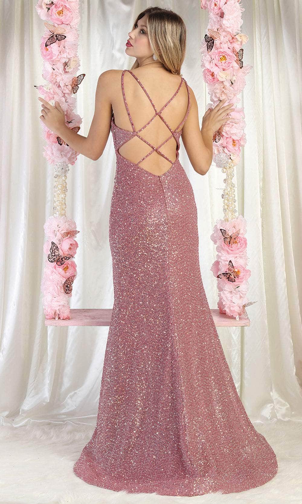 Combine con elegancia el encanto, el romanticismo y la belleza perdurable con esta creación RQ8005 de May Queen. Este inspirado conjunto, adornado con una reluciente silueta metálica, luce tirantes de espagueti que descienden con gracia hasta un profundo escote en pico. La espalda abierta está intrincadamente lazada, lo que añade un toque de encanto al diseño. La falda, hábilmente confeccionada, se abre con una provocativa abertura, esculpiéndose y acampanándose para crear un efecto arrollador y dramático. Presente un estilo exquisito que promete cautivar los focos con la obra maestra May Queen RQ8005, un testamento de elegancia atemporal. Las modelos llevan los colores Dusty Blue y Mauve.