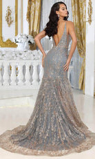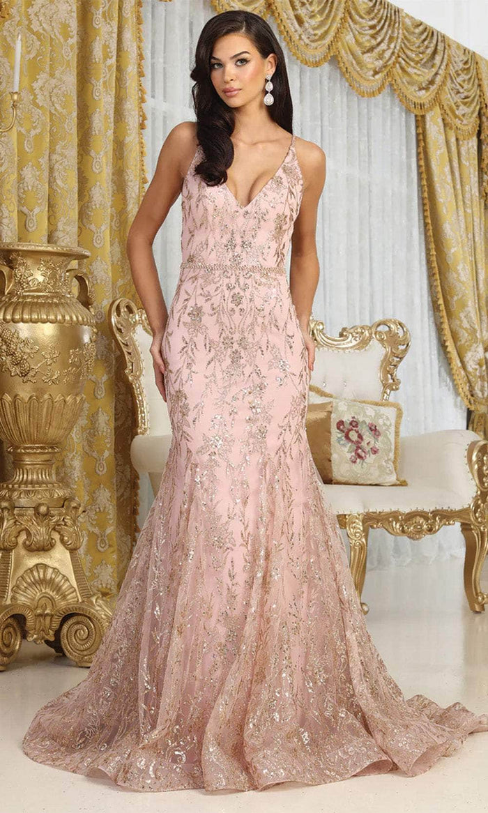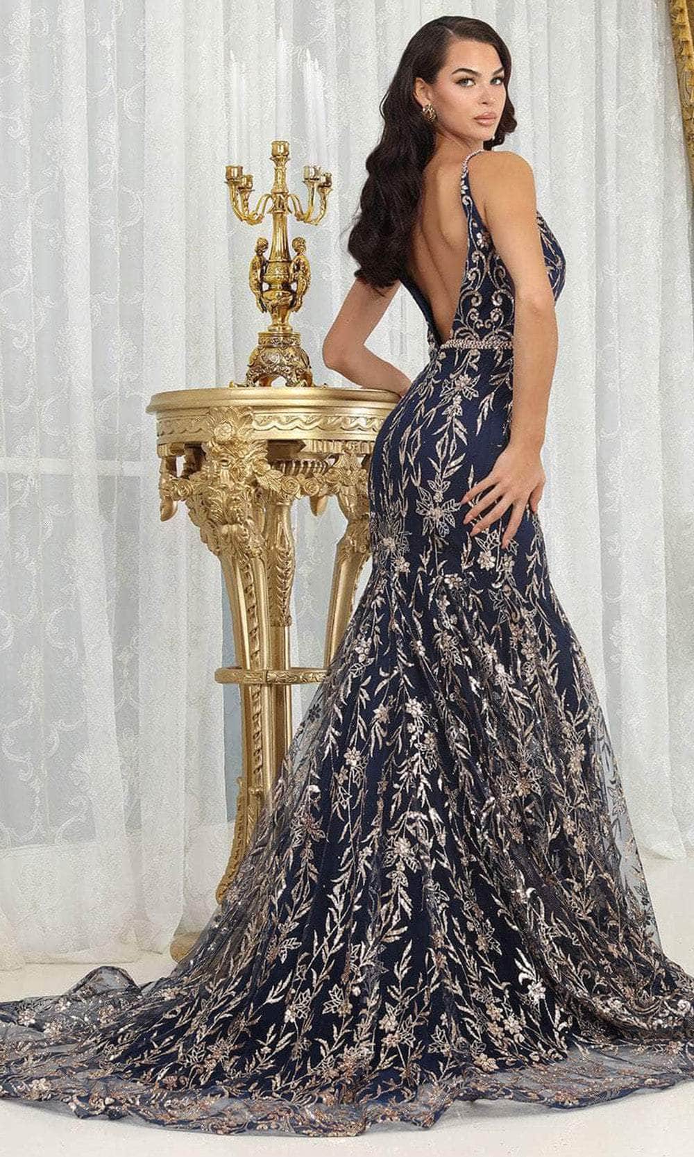 Deslícese con gracia por la alfombra roja de su evento con elegancia y seguridad en sí misma en esta elegante creación May Queen RQ8017. Elaboradas líneas trazan intrincadamente las encantadoras curvas de esta silueta embellecida. Decorado con brillantes detalles metálicos, el escote en pico complementa con gracia el corpiño. Con tirantes espagueti y cintura de pedrería, esta maravilla incluye una profunda abertura en V en la espalda y cierre de cremallera oculta. Con su falda de detalles metálicos que dibuja una silueta de sirena, desciende con gracia en una amplia cola. Cause una impresión memorable en la alfombra roja con esta obra maestra de May Queen RQ8017, un símbolo imperecedero de sofisticación. Las modelos llevan los modelos Blush/Oro, Borgoña/Oro. Carbón/Oro, y Azul Marino/Oro.