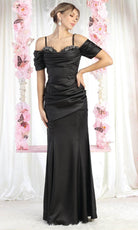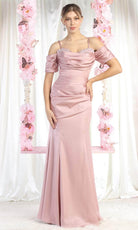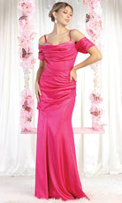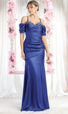 Desprenda pura elegancia y aplomo cuando se pasee por el salón de baile con esta hermosa creación de May Queen RQ8021. Elocuentemente estilizada con un espectáculo de pliegues a lo largo del corpiño, esta impresionante pieza florece un escote off shoulder con un busto embellecido. Diseñada con tirantes de espagueti y acentuada con una manga corta ornamentada con pliegues, esta seductora pieza también presenta una espalda con estilo de encaje. Confeccionada con un suave drapeado, la falda trompeta contornea maravillosamente la silueta femenina y cae en cascada en una vaporosa cola. Sea el deleite de la multitud al hacer una entrada tan hipnotizadora con esta obra maestra de May Queen RQ8021. Las modelos llevan los colores Negro, Fucsia, Malva y Azul Real.