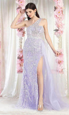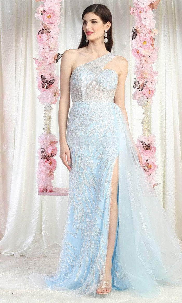 Robará todas las miradas con esta hermosa creación de May Queen RQ8026. Los extravagantes bordados y los abalorios brillantes de este vestido sin mangas garantizan un atractivo atemporal y con clase. El corpiño ilusión añade un toque tentador, coronado por un escote asimétrico, forro en forma de corazón dulce y espalda abierta escotada. La falda enfundada realza su belleza natural y ofrece una provocativa abertura a la altura de los muslos antes de fluir hacia una amplia cola. Estará escultural con un posado vestido de May Queen RQ8026. Las modelos llevan los colores Baby Blue, Lilac y Mauve.