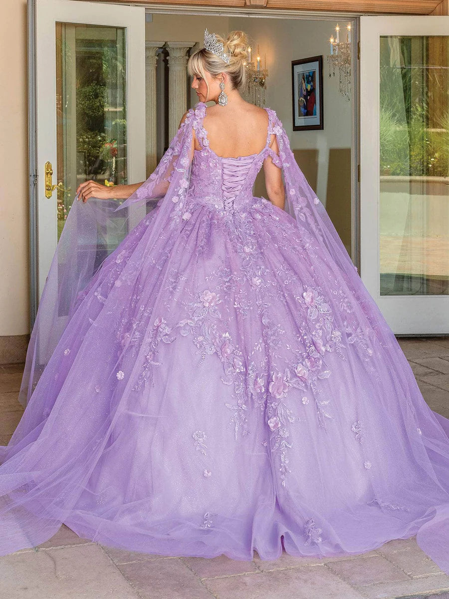 Conviértete en el centro de atención y brilla en tu fiesta de Quinceañera con esta creación. Encantadoramente adornado con flores en 3D y adornos resplandecientes, este aturdidor comienza con un escote en V y tirantes adornados con flores. Detallado con un corsé en la espalda, las fajas transparentes en cascada fluyen hasta el piso. La falda del vestido de gala cae en cascada inmaculadamente hasta un tren