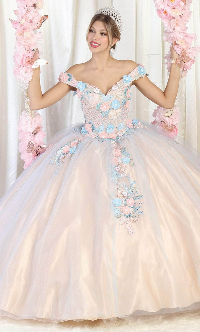 Vaya más allá de lo impresionante en su fiesta de Quinceañera con esta fabulosa creación Reina de Mayo LK164. Festoneado con flores pastel en 3D sobre un corpiño adornado con pedrería, esta noche hace alarde de un escote con hombros al descubierto y una espalda de encaje estilo corsé. La falda, con delicados detalles florales que adornan la cintura del corpiño antes de descender por la espumosa silueta, está confeccionada en una silueta de vestido de baile que fluye exquisitamente en un diseño amplio. Brille con la elegancia atemporal que confiere esta obra maestra de May Queen. La modelo lleva el color Blush/Multi.