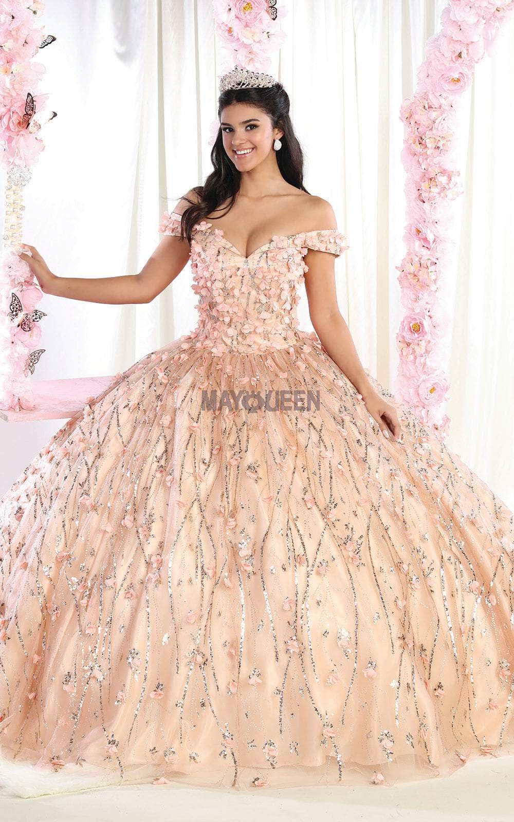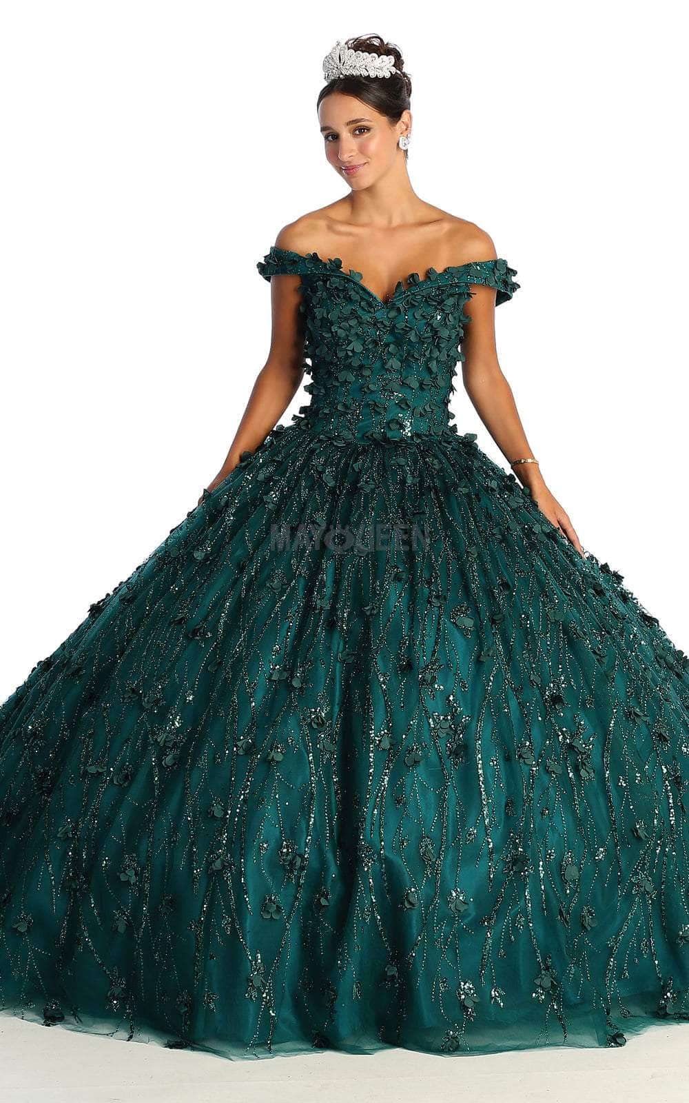 Póngase glamurosa bajo los detalles modernos y clásicos de la silueta Corte-A de May Queen LK167. Este magnífico vestido presenta un escote corazón con un tirante fuera del hombro y apliques de hojas con detalles brillantes de pedrería que componen los patrones que fluyen a través de la silueta de línea A que termina con una cola de barrido. ¡Encante a todos desde todos los ángulos mientras brilla toda la noche con esta obra maestra de Reina de Mayo! Las modelos lucen los colores verde cazador, champán/oro, lila y oro rosado.