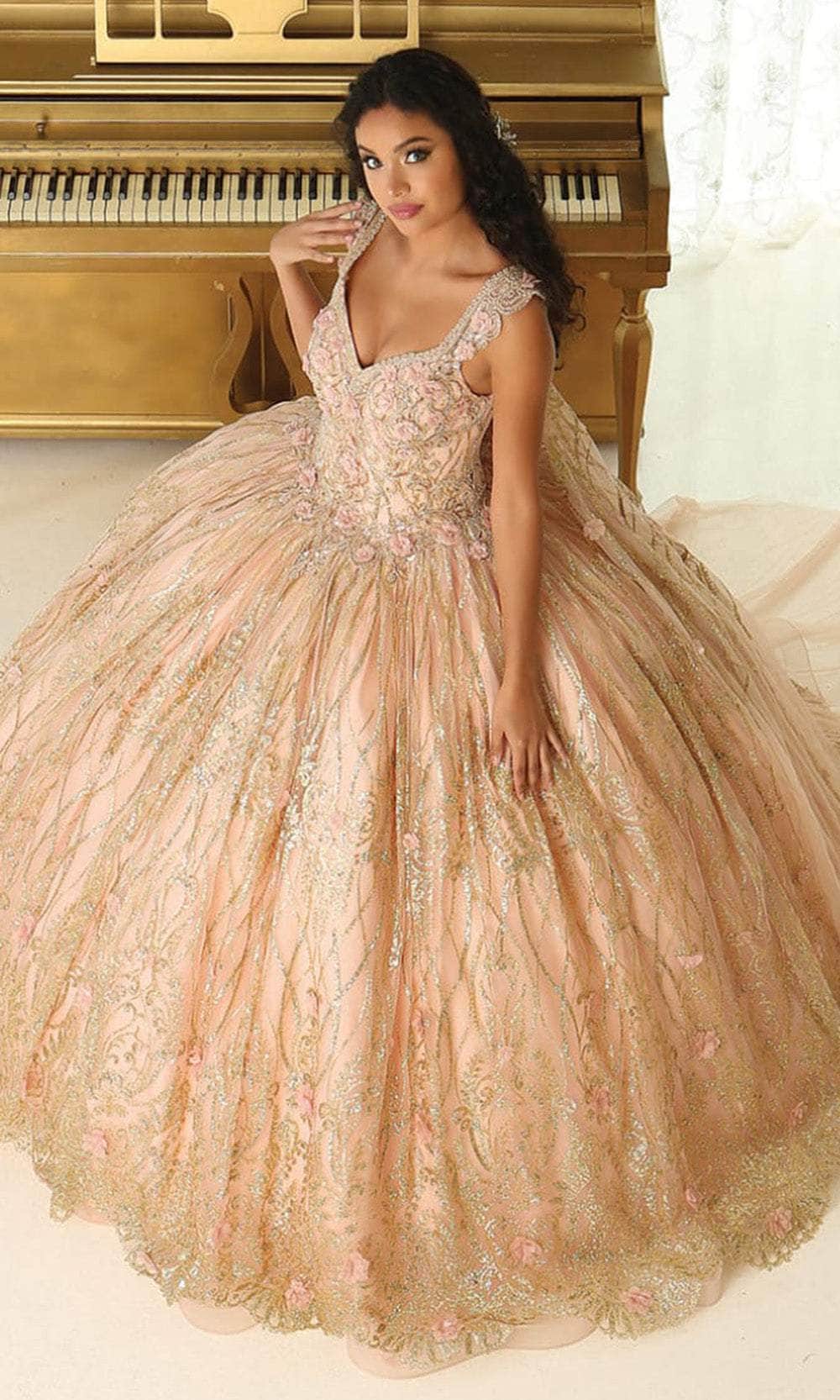 Hipnotice a todos con el romance y el esplendor de este vestido de quinceañera May Queen LK211. Intrincadamente adornado con detalles brillantes y deslumbrantes motivos de encaje metálico en todo, esta noche cuenta con un escote en V emparejado con mangas semi transparentes. Realzado con detalles florales en 3D y adornado con una capa metálica transparente, la espalda está provista de un corsé que garantiza un ajuste perfecto. Las capas de tela fluyen con gracia, esculpiendo una encantadora silueta de vestido de baile con una amplia cola. Conmemore su viaje hacia la feminidad con nuestra magnífica obra maestra Quinceanera May Queen LK211. La modelo lleva puesto el color Rose Gold.
