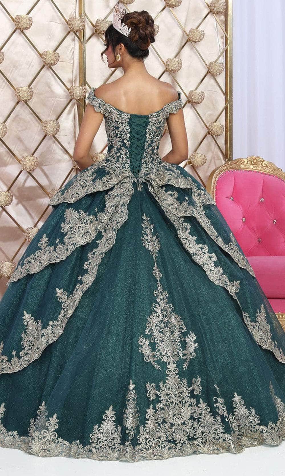Entre en una atmósfera de sofisticación y encanto con nuestro impresionante vestido de quinceañera May Queen LK234. Finamente embellecido con detalles brillantes y lustrosos motivos de encaje metálico por todas partes, este vestido luce un escote sin hombros acentuado con ribetes festoneados. Adornada con detalles metálicos y pedrería, la espalda presenta un corsé que garantiza un ajuste perfecto. Las capas de tela fluyen con gracia, esculpiendo una encantadora silueta de vestido de baile con un dobladillo hasta el suelo y lujosas capas laterales. Hipnotice a todos los que se encuentren con usted en nuestra glamurosa obra maestra Quinceanera May Queen LK234. Las modelos llevan los colores Real/Dorado y Cazador/Dorado.