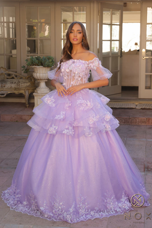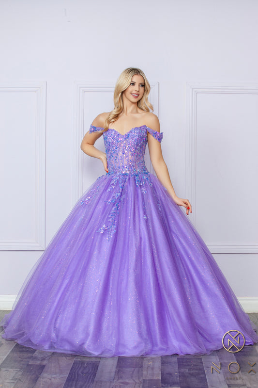 Vestido de baile con apliques y sin hombros de Nox Anabel CU1193