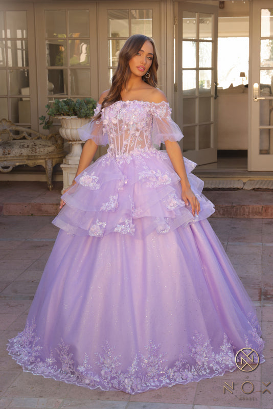 Vestido de Quinceanera con capas y hombros descubiertos de Juliet 1432